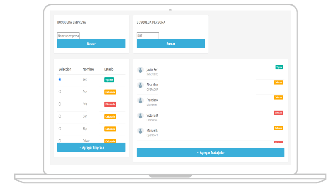 • Asocia trabajadores a esa empresa creada anteriormente e ingresa la documentación respectiva.